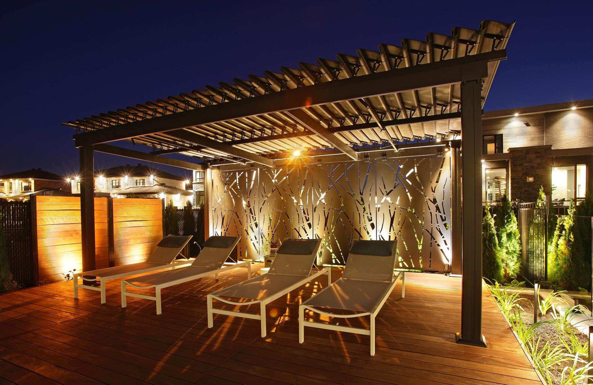 Add privacy to your pergola with our aluminum panels. Perfect for shielding from prying eyes while still letting light through, they can be easily installed on the sides or the roof. Durable and long-lasting, they come in a variety of patterns and colors to match your style. Beautiful projects created in collaboration with exceptional landscape designers.